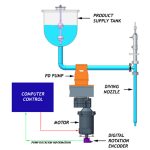 - Koneet, joissa käytetään pumpun täyttöperiaatetta, voivat myös olla ihanteellisia paksummille, viskoosimmille tuotteille. Käytetyn pumpun tyyppi riippuu tuotteesta ja täyttöasteesta, ja käytettävissä on monia vaihtoehtoja. Esimerkiksi hammaspyöräpumppua voidaan käyttää tuotteen siirtämiseen joko ajankohdan tai vaihdevaihteen perusteella (pulssipohjainen). Peristalttinen pumppu käyttää teloja, joiden avulla tuote voidaan pumpata joutumatta kosketuksiin pumpun komponenttien kanssa, vain letkujen kanssa, mikä tekee tästä pumpusta ihanteellisen farmaseuttisissa ja joissain ruoka- tai makuprosesseissa.